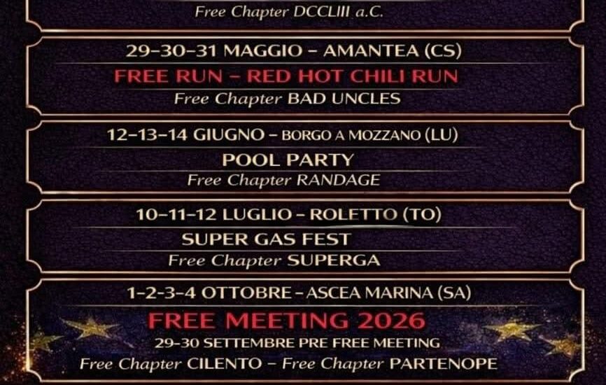 Buon compleanno agli Arretivm Free Chapter e agli AsproMunti Free Chapter per i loro 4 anni on the road! Auguri ragazzi da Free Chapter Italia!